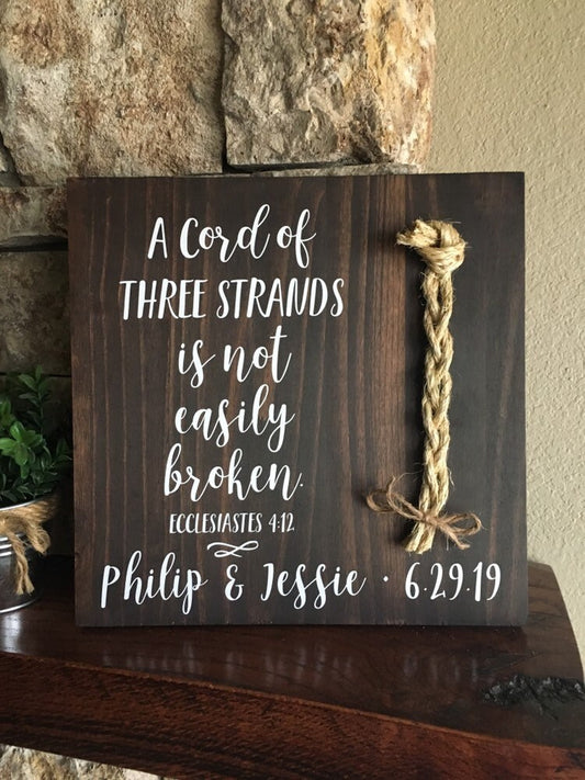 Christian Wedding Gift, A Cord of Three Strands is Not Easily Broken, Personalized Gift for Couple, Anniversary Gift