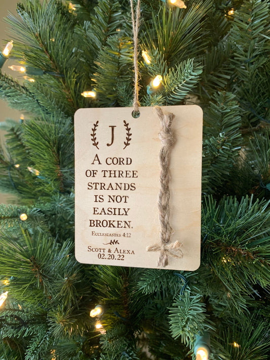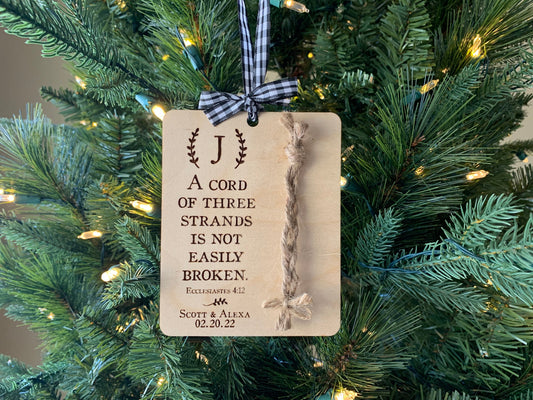 Christian Wedding Gift, A Cord of Three Strands is Not Easily Broken, Personalized Gift for Couple, Anniversary Gift