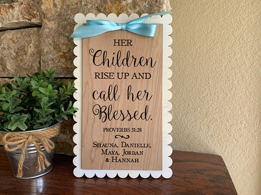 Personalized Gift for Mom, Proverbs 31:28 sign, Her children rise up and call her blessed