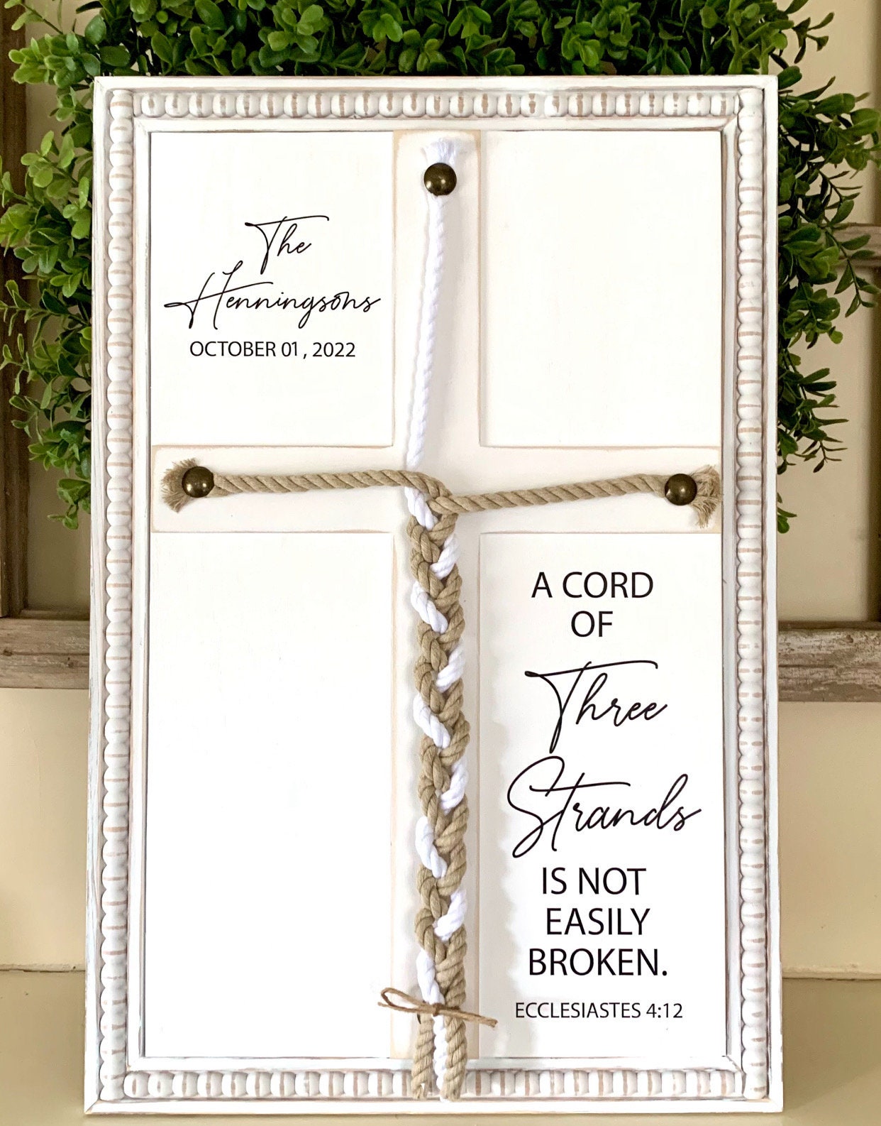A Cord Of Three Strands, Unity Wedding Sign, Rope Cross Unity Sign, Ecclesiastes 4:12