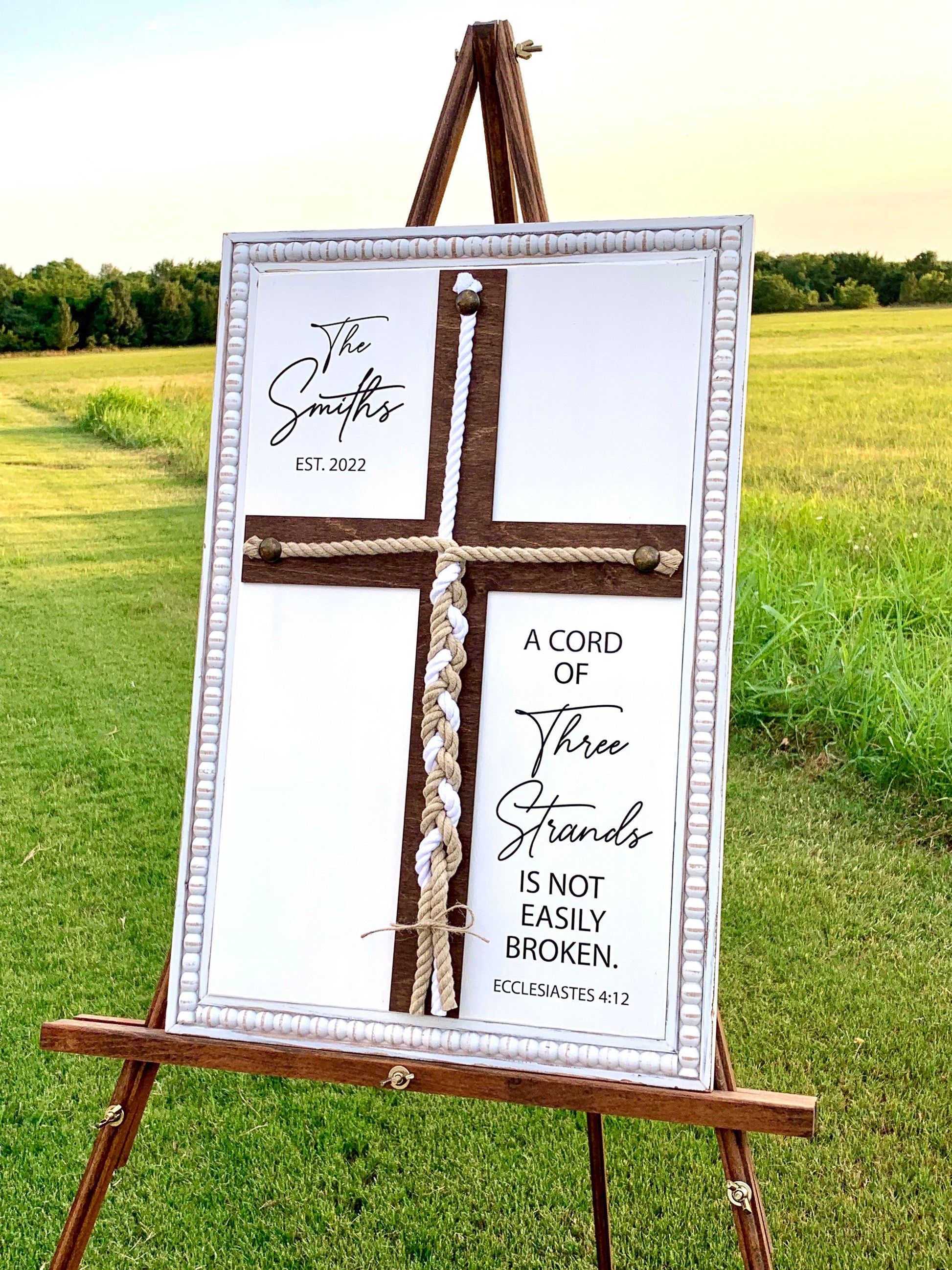 A Cord Of Three Strands, Unity Wedding Sign, Rope Cross Unity Sign, Ecclesiastes 4:12