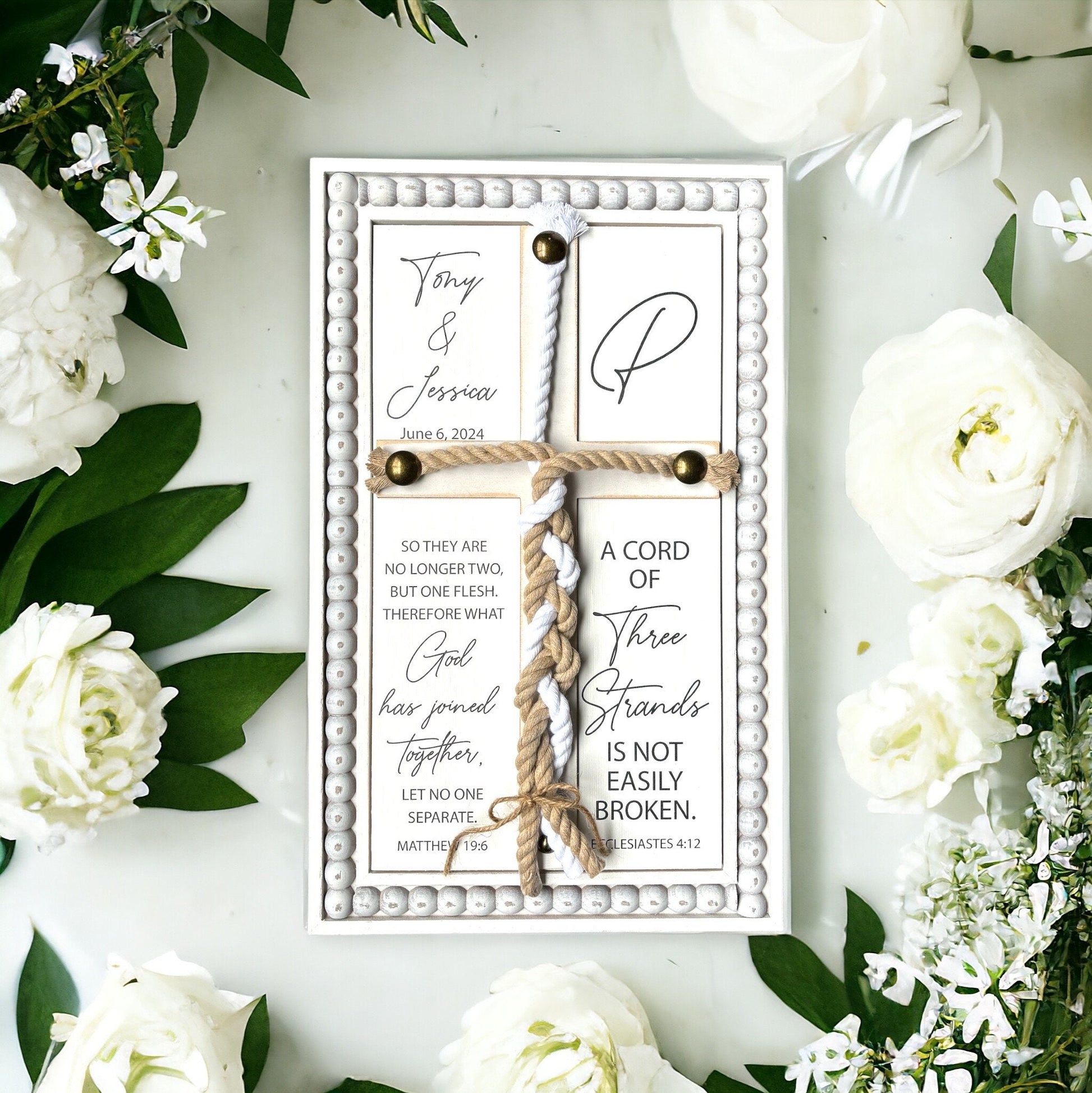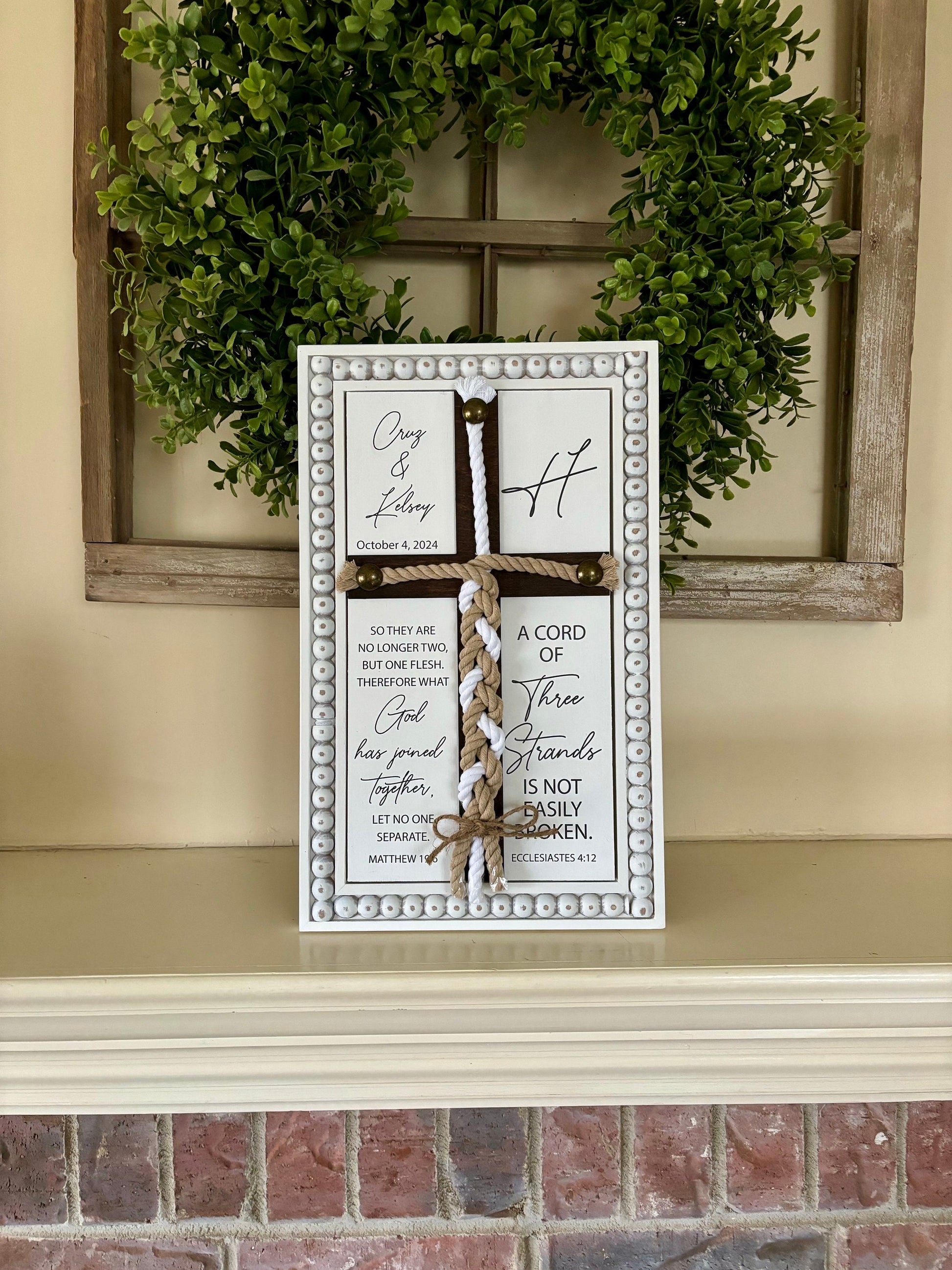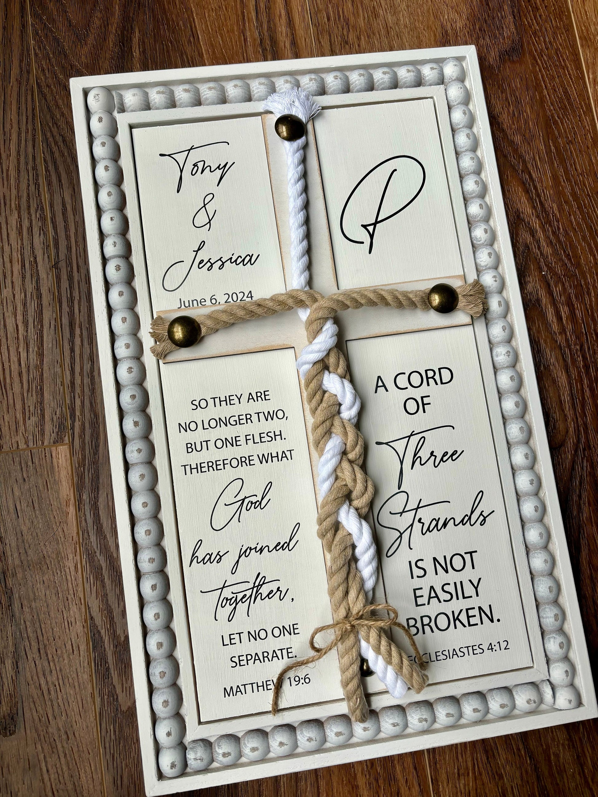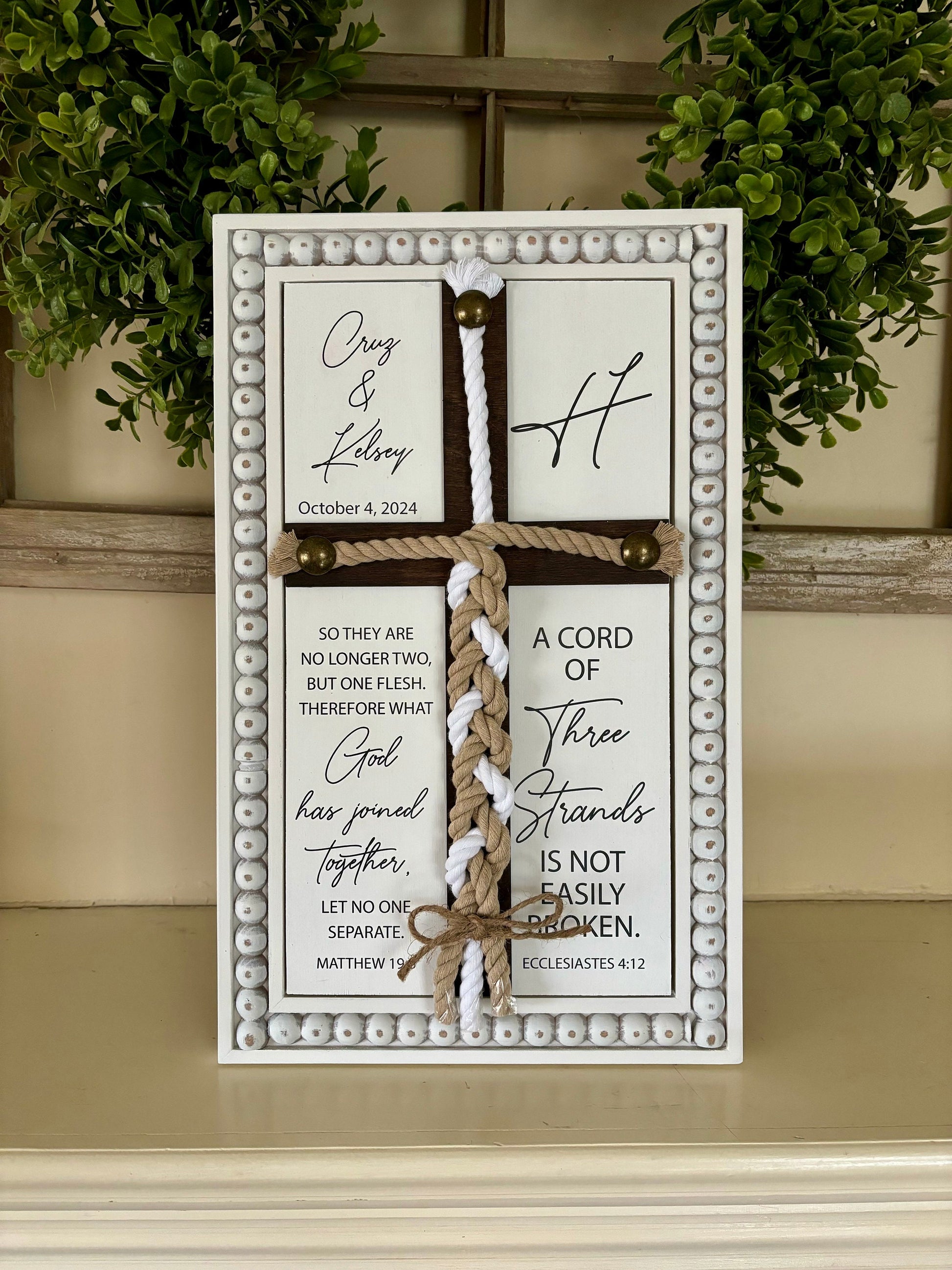 A Cord Of Three Strands, Unity Wedding Sign, Rope Cross Unity Sign, Ecclesiastes 4:12, Matthew 19 6