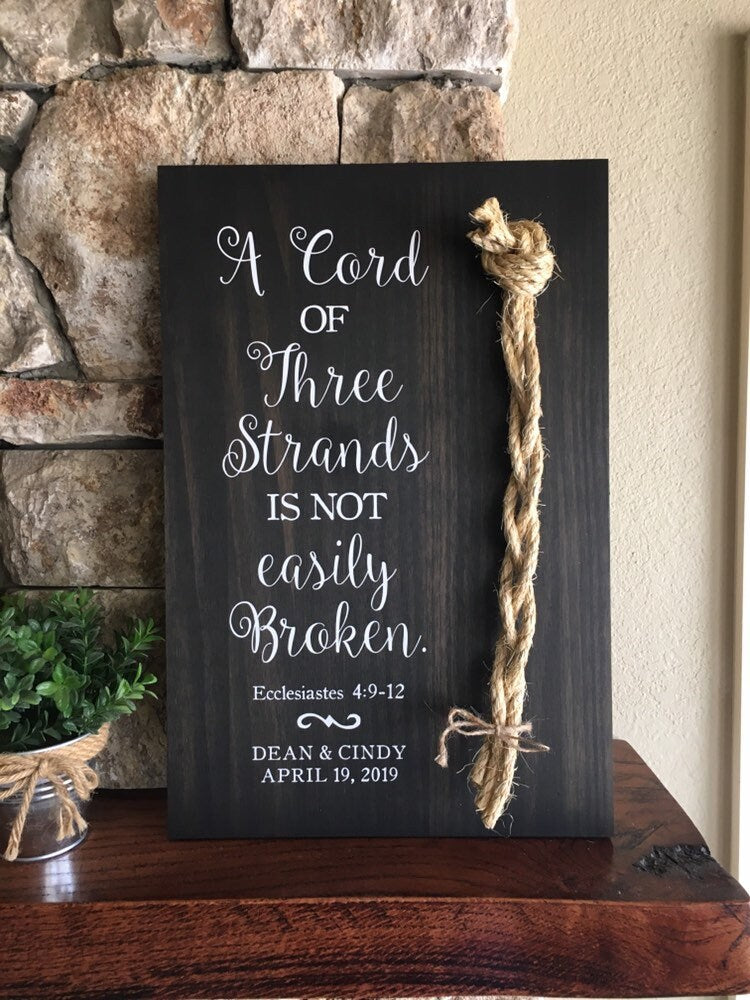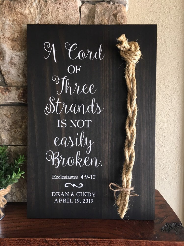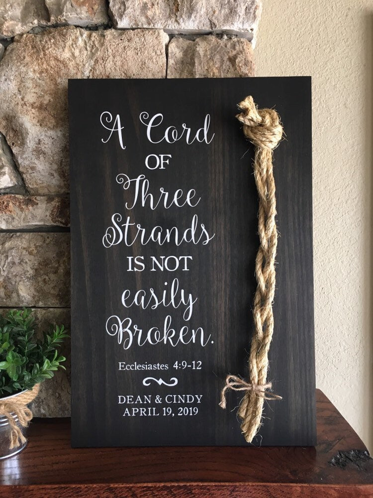 A Cord Of Three Strands Wedding Sign, Ceremony Sign, A Cord of 3 Strands, Ecclesiastes 4:9-12, Wedding Gift, Fall Wedding Decor, Cord Sign