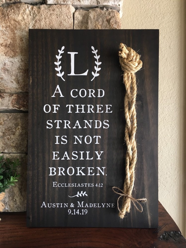A Cord Of Three Strands Wedding Sign, Ceremony Sign, A Cord of 3 Strands, Ecclesiastes 4:9-12, Wedding Gift, Fall Wedding Decor, Cord Sign