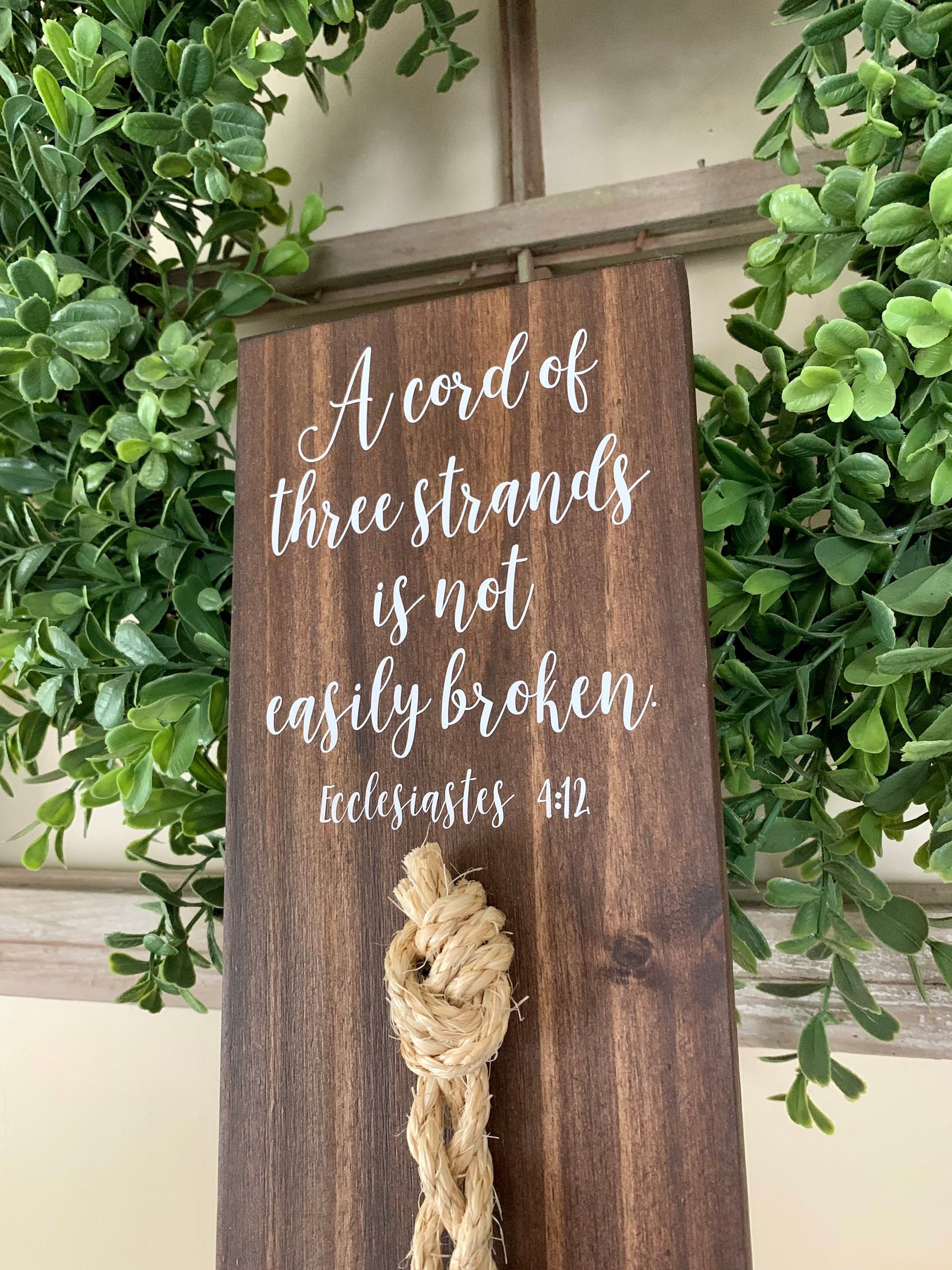 A Cord Of Three Strands Wedding Sign, Unity Ceremony Sign