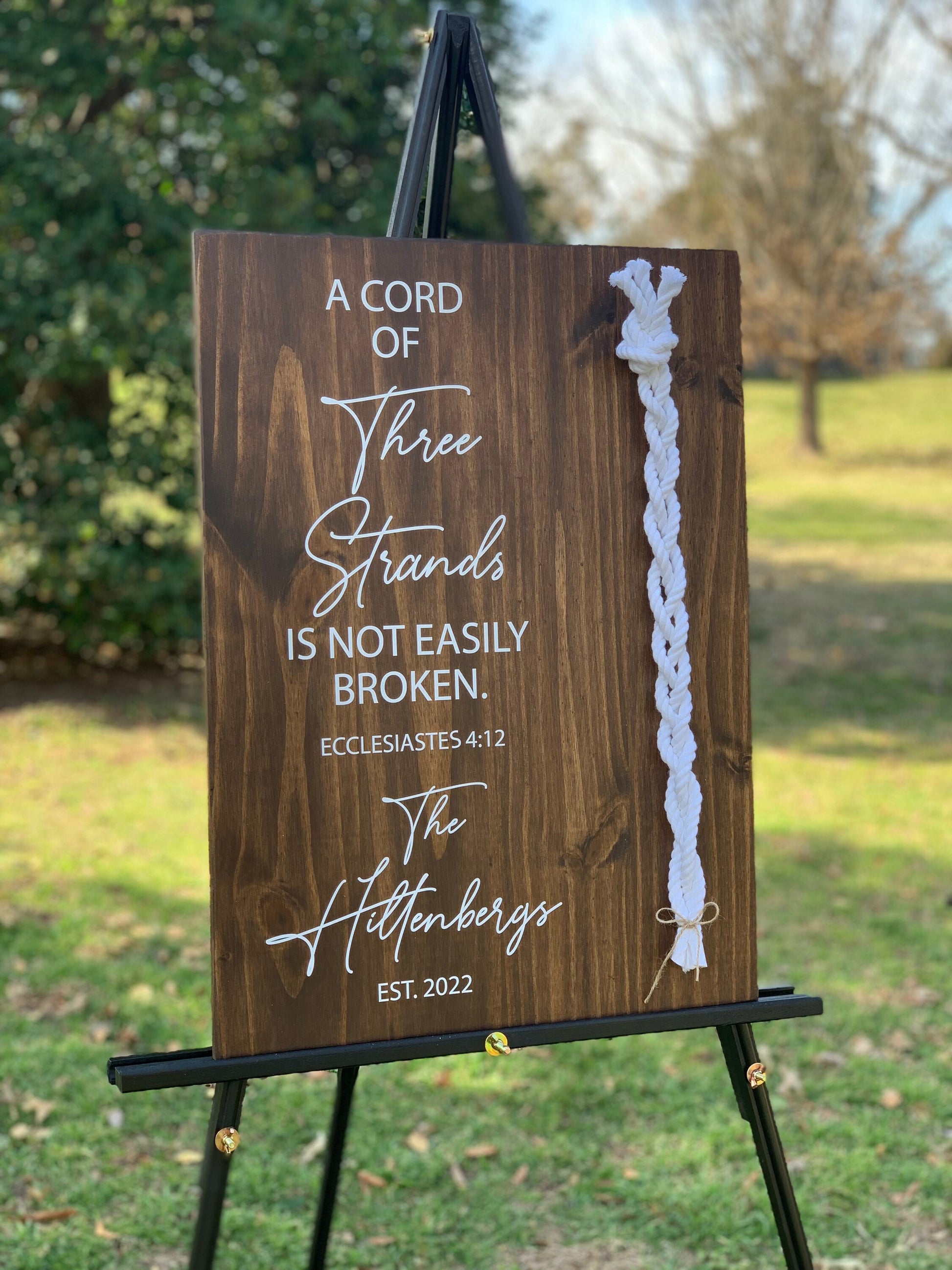 A Cord Of Three Strands Wedding Sign, White Cords, Unity Ceremony Sign, A Cord of 3 Strands, Ecclesiastes 4:12