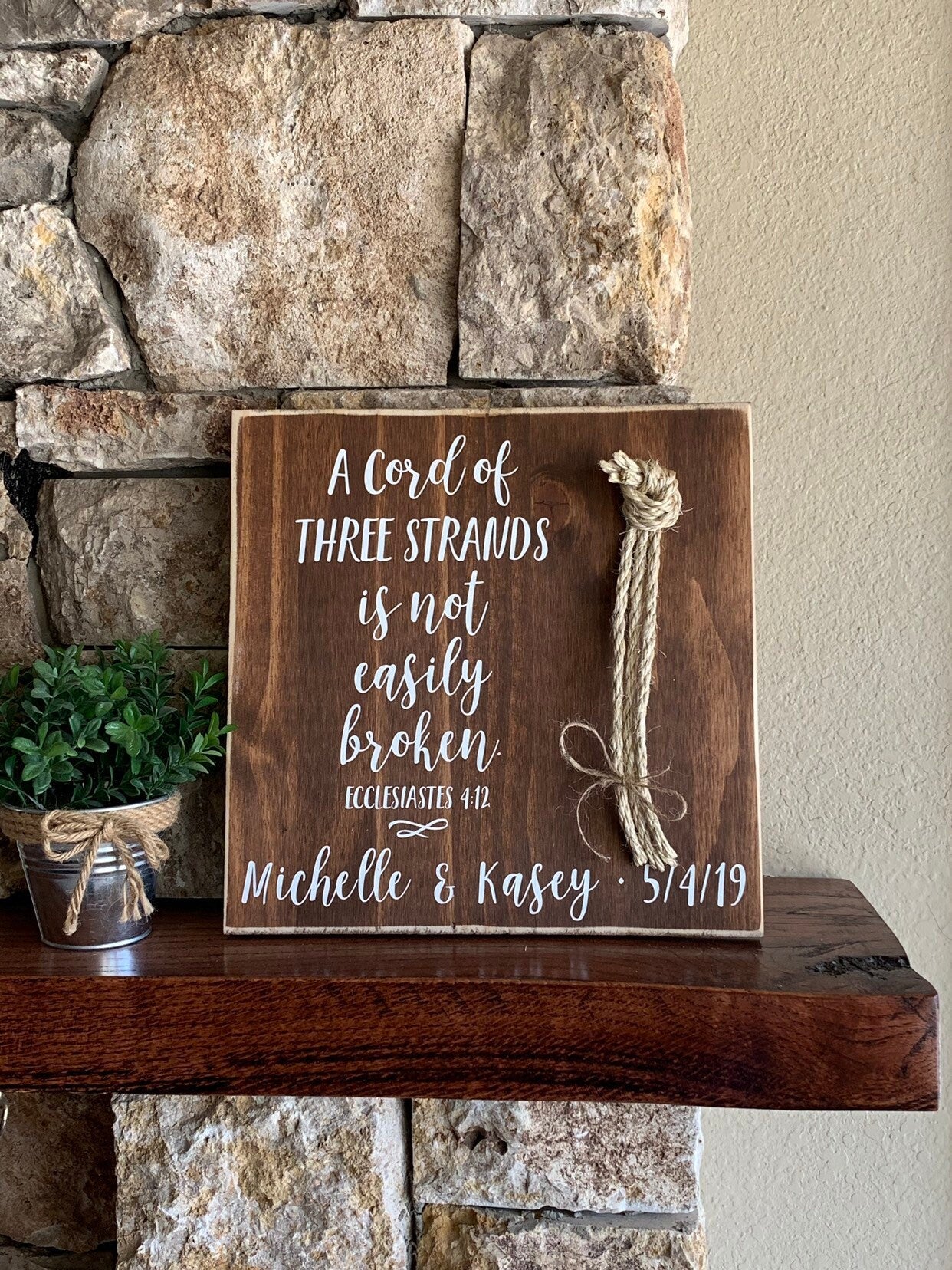 Christian Wedding Gift, A Cord of Three Strands is Not Easily Broken, Personalized Gift for Couple, Anniversary Gift