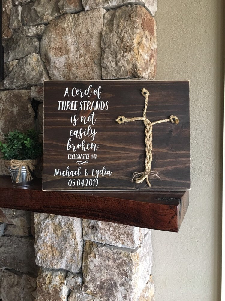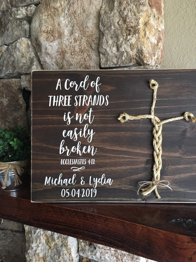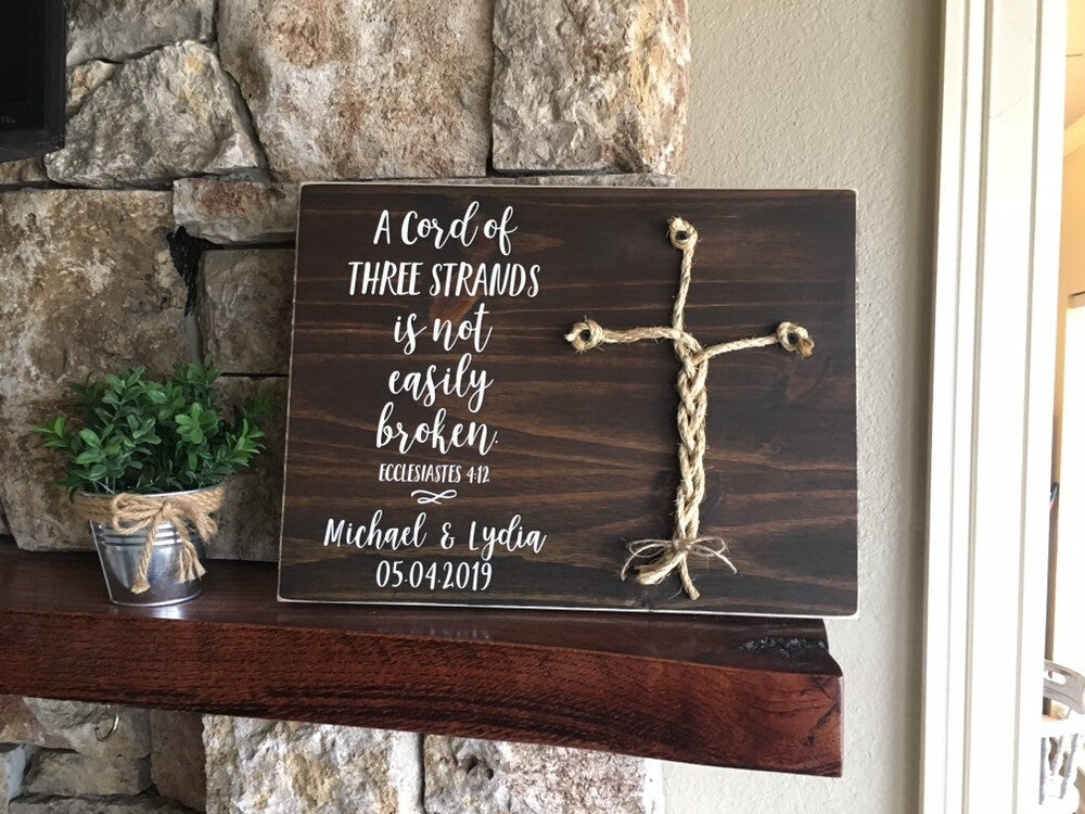 Christian Wedding Gift, A Cord of Three Strands is Not Easily Broken, Personalized Gift for Couple, Anniversary Gift