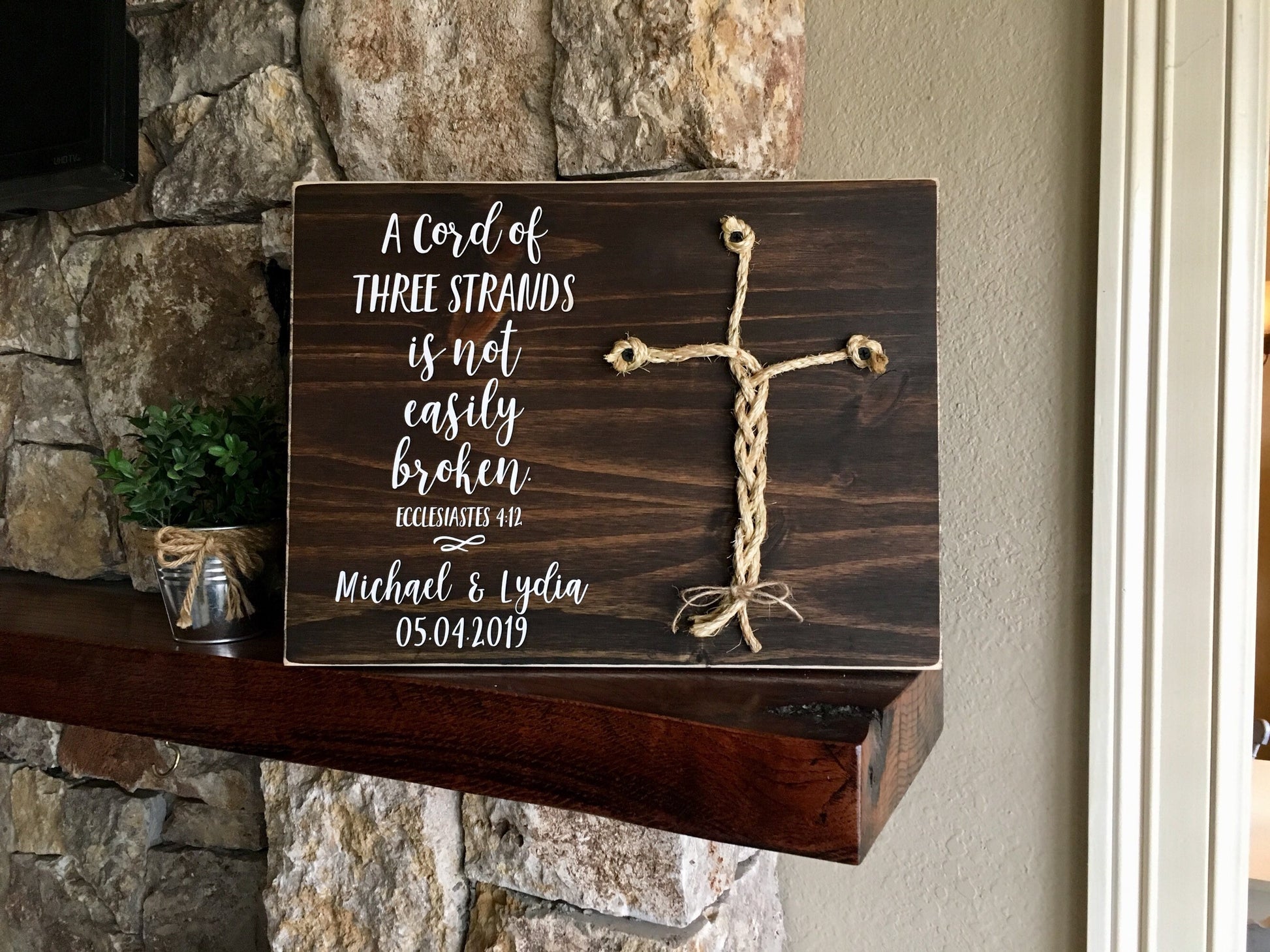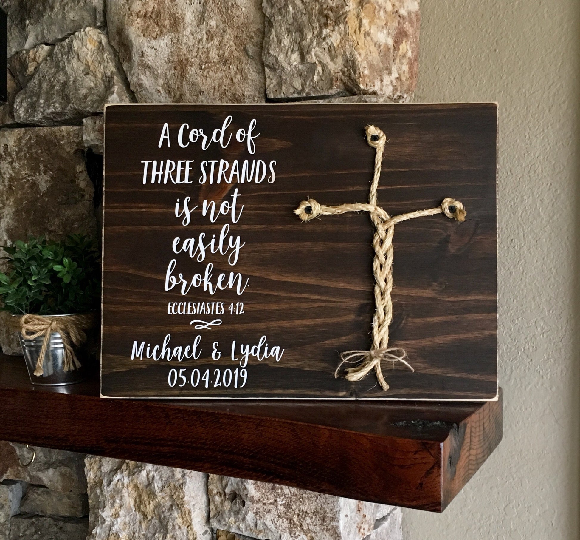 Christian Wedding Gift, A Cord of Three Strands is Not Easily Broken, Personalized Gift for Couple, Anniversary Gift