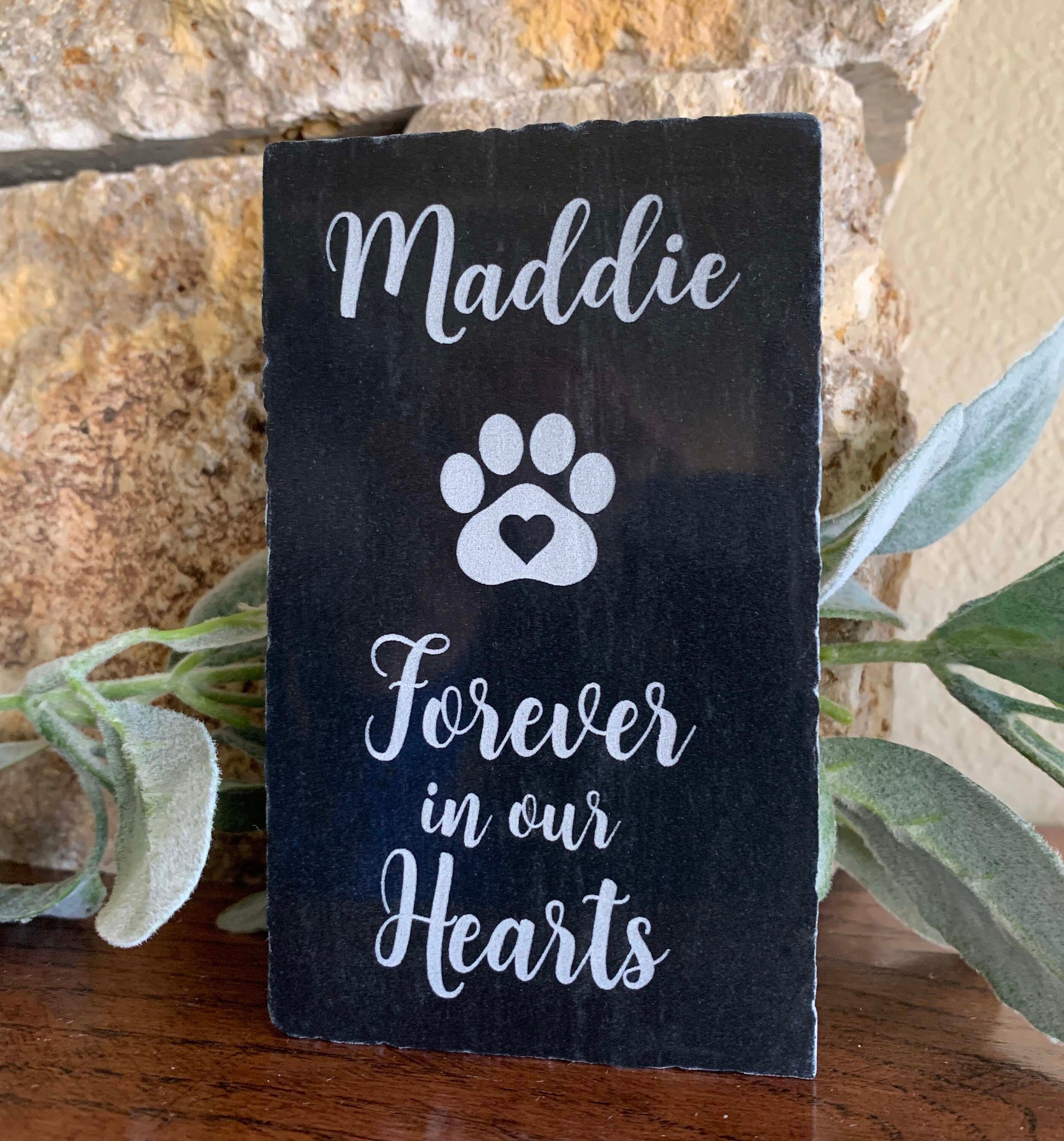 Our custom engraved memorial signs make the perfect sympathy gift for a pet owner or to memorialize your own precious pet. We custom engrave the pet's name along with your choice of several sentiments for you to choose from. If you choose the custom sentiment option from the menu, please enter how you want to appear in the personalization box.