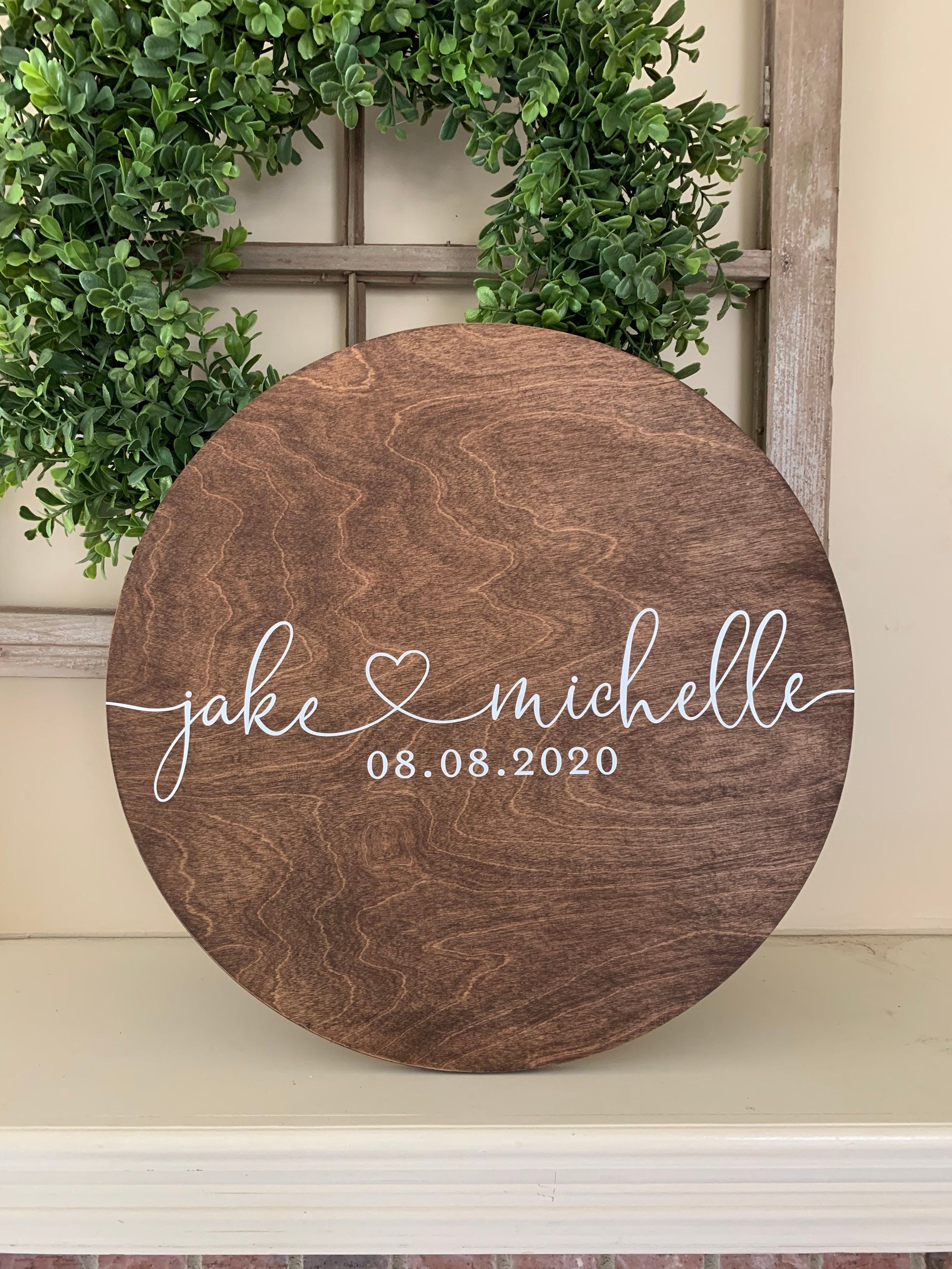 A guest book you can display in your home and enjoy for years to come! This sign features the couple's names connected by a heart and wedding date in the center with space for guests to sign their names and write well-wishes. Sharpies and paint pens work great for signing (not included).
