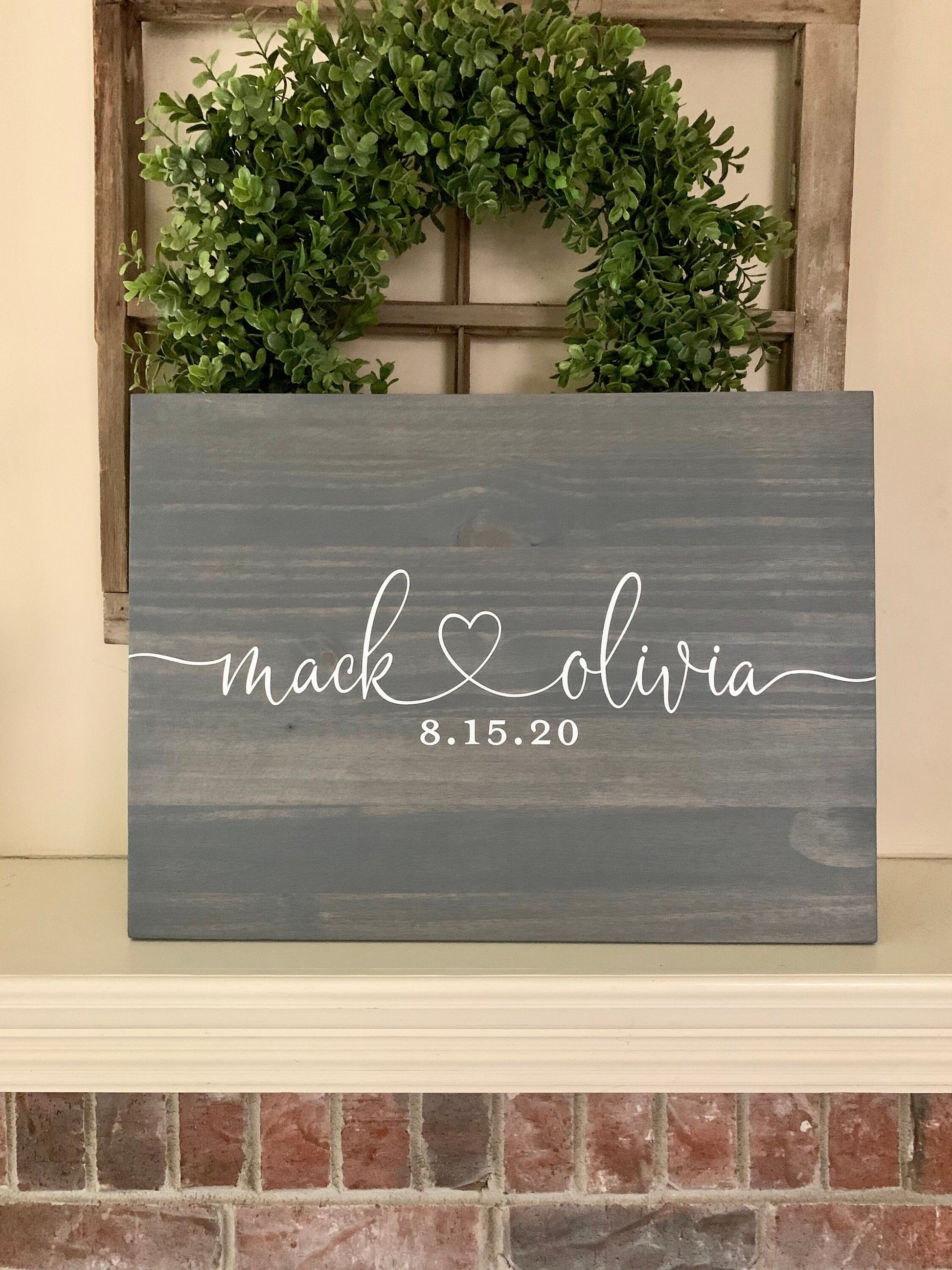 A guest book you can display in your home and enjoy for years to come! This sign features the couple's names connected by a heart and wedding date in the center with space for guests to sign their names and write well-wishes. Sharpies and paint pens work great for signing (not included).
